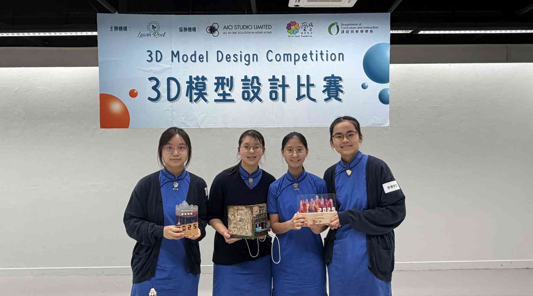 Four S5 students achieved outstanding results in the “Second 3D Model Design Competition”, themed "Hong Kong Culture (香港文化)". Their 3D model, titled "Four Warriors of the Walled City (城寨四少)", earned them the Champion Award and the Best Presentation Award.