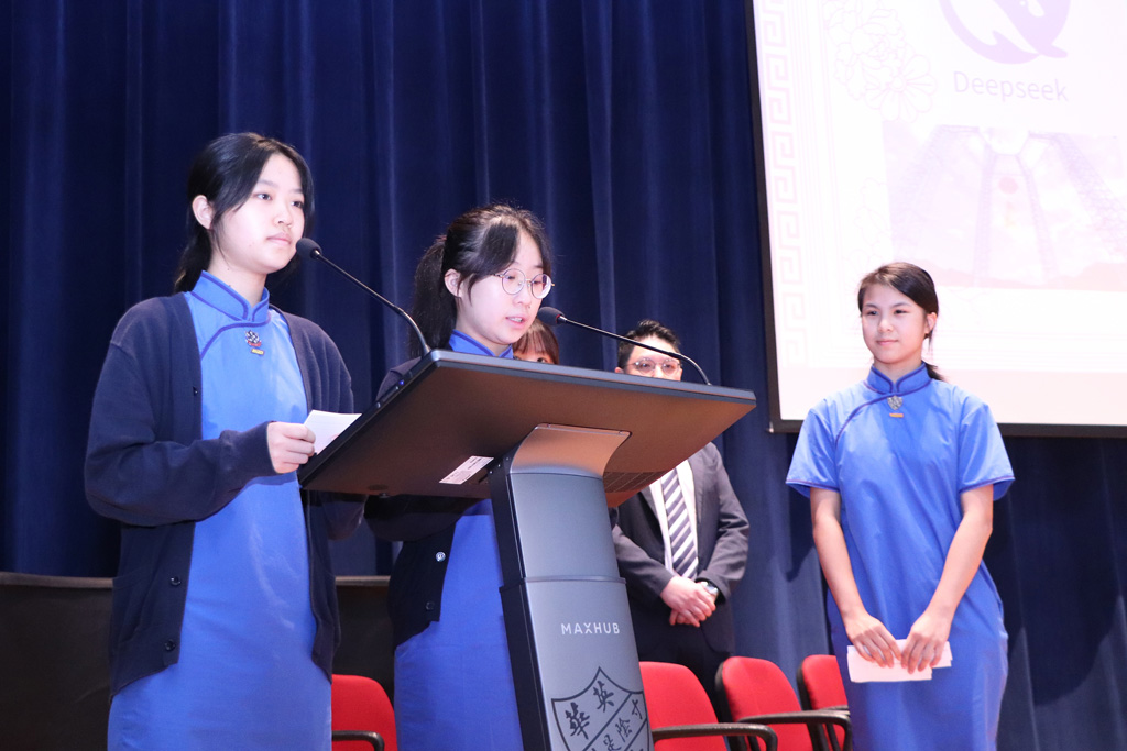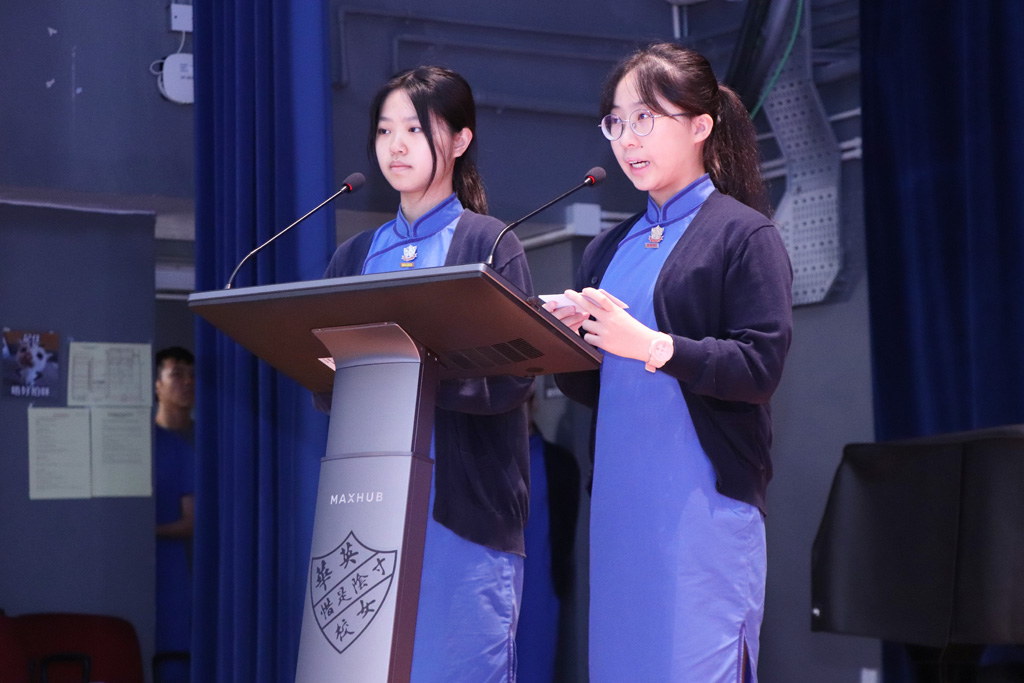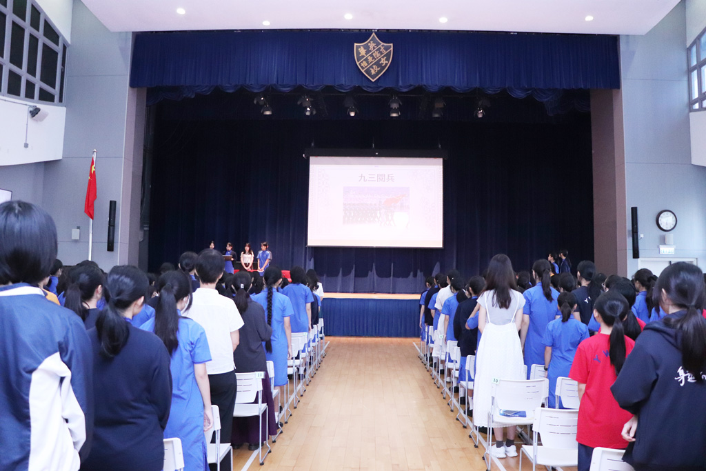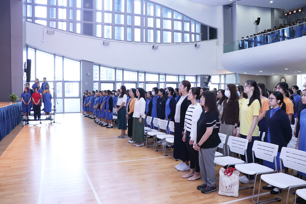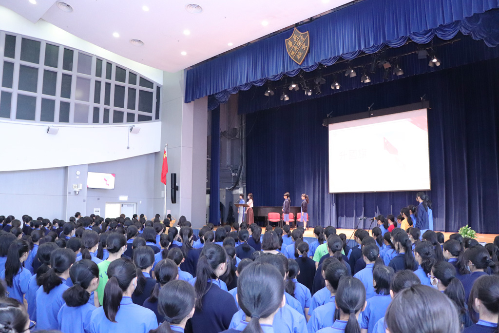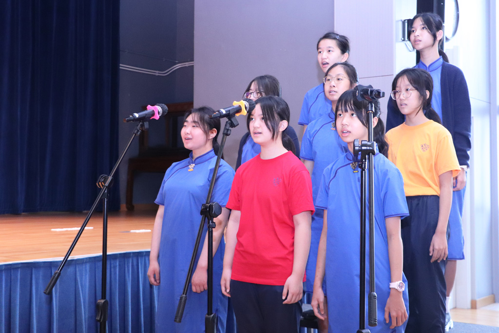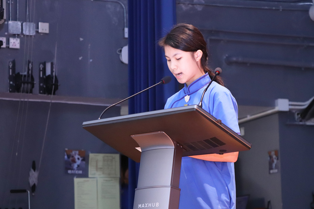 To honour the 76th Anniversary of the founding of the People’s Republic of China, as well as the 80th Anniversary of the Victory in the Chinese People’s War of Resistance against Japanese Aggression and the World Anti-Fascist War, our school held a flag raising ceremony led by our Flag Hoisting Team and the Civic Education Committee on September 30. Accompanied by an uplifting tune and the flawless march of the Flag Hoisting Team, the student body sang the national anthem with pride. The ceremony was followed by Cheung Yik Shuen (4C) and Gong Man Yuet (5A)’s heartfelt sharing on our country’s achievements in science and technology, the September 3rd Victory Day Parade, and the 80th Anniversary of our victory in World War II. It is an occasion for us to remember history, honour fallen heroes, cherish peace, and create a better future (銘記歷史 緬懷先烈 珍愛和平 開創未來). Through this ceremony, the values of national identity, unity, and peace were conveyed.