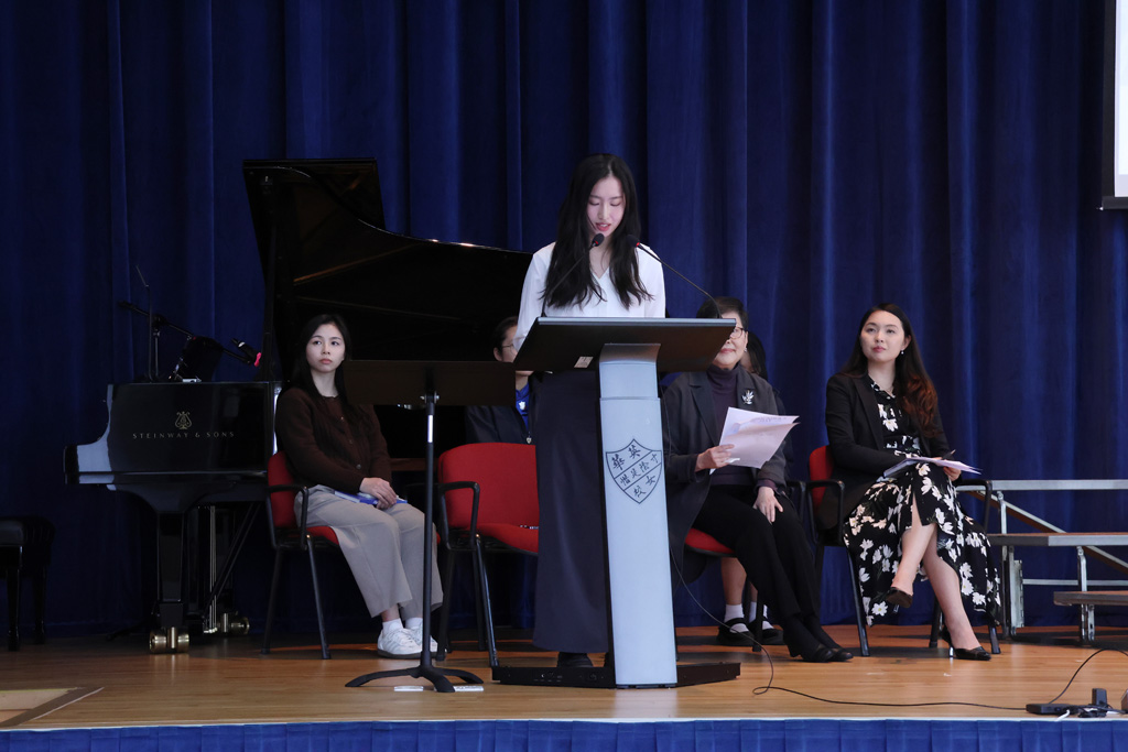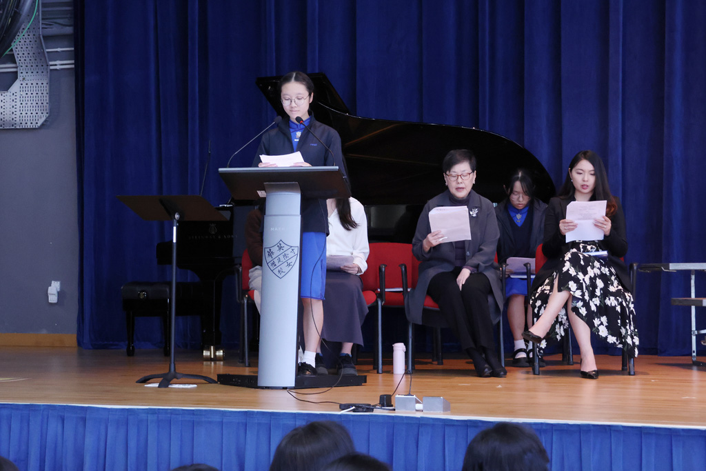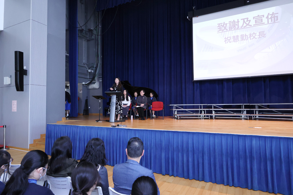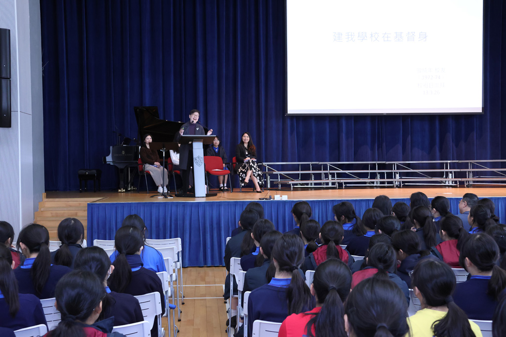 Our annual Founder’s Day Service was held on March 13, 2026.  We were honoured to welcome the Honorary Manager of the IMC (Incorporated Management Committee) and alumna Ms Enian Tsang (曾綺年女士), who shared on the theme “Build My School on Christ 建我學校在基督身.”  Ms Tsang recalled how, in the early 1970s, Ying Wa organised a Fun Fair and leadership training camps to broaden students’ horizons and encourage them to explore.  She also drew inspiration from two Bible verses:  Matthew 7:24, “Everyone then who hears these words of mine and does them will be like a wise man who built his house on the rock,” and Ephesians 4:15‑16, “Rather, speaking the truth in love, we are to grow up in every way into him … makes the body grow so that it builds itself up in love.”  Her message reminded us that always bearing God’s words in mind and living them out are the best ways for Ying Wa to continue shining as a 126‑year‑old school blessed by God.