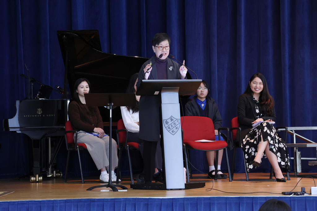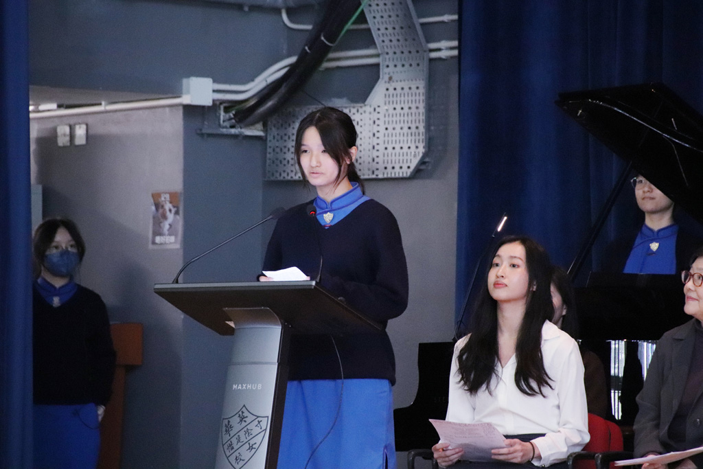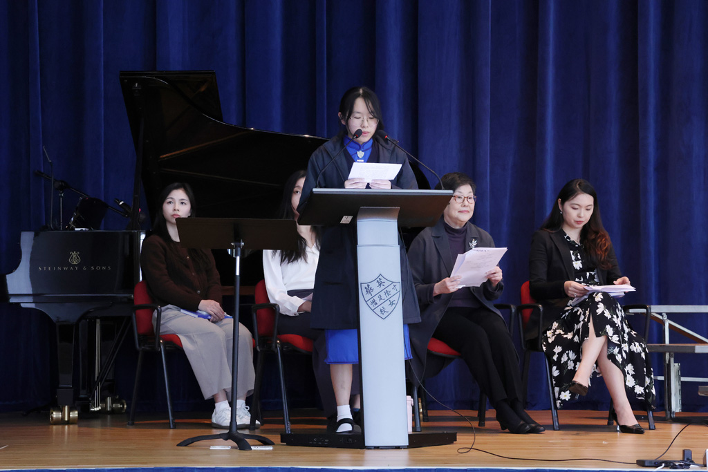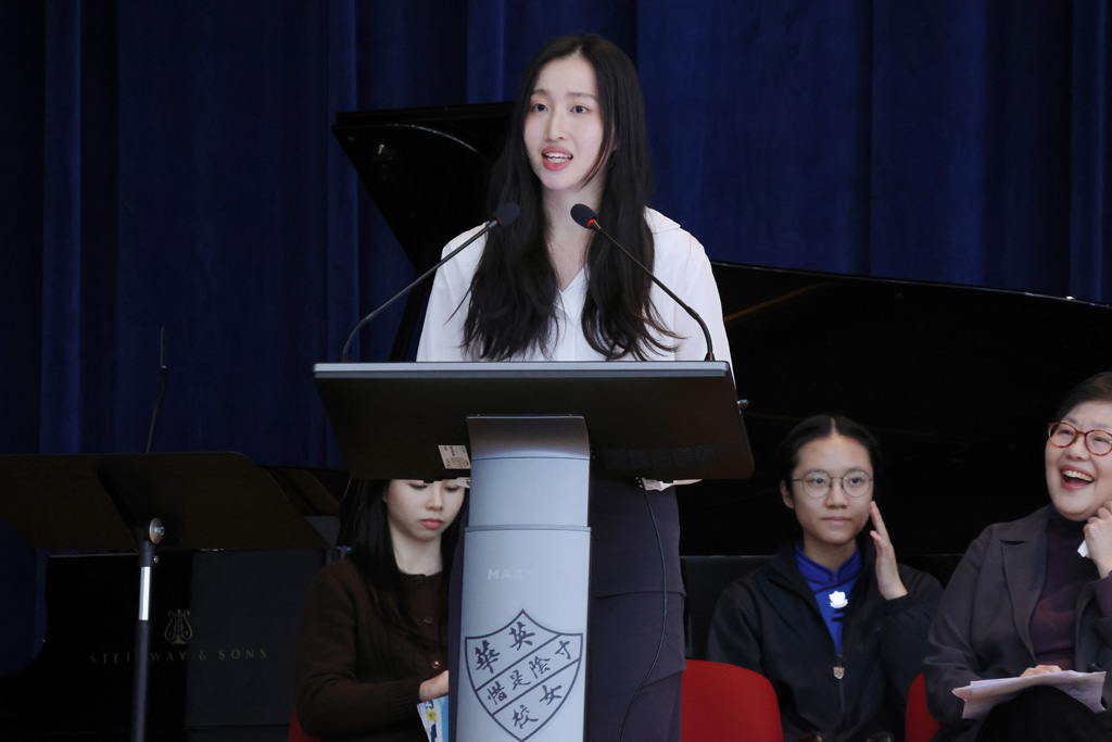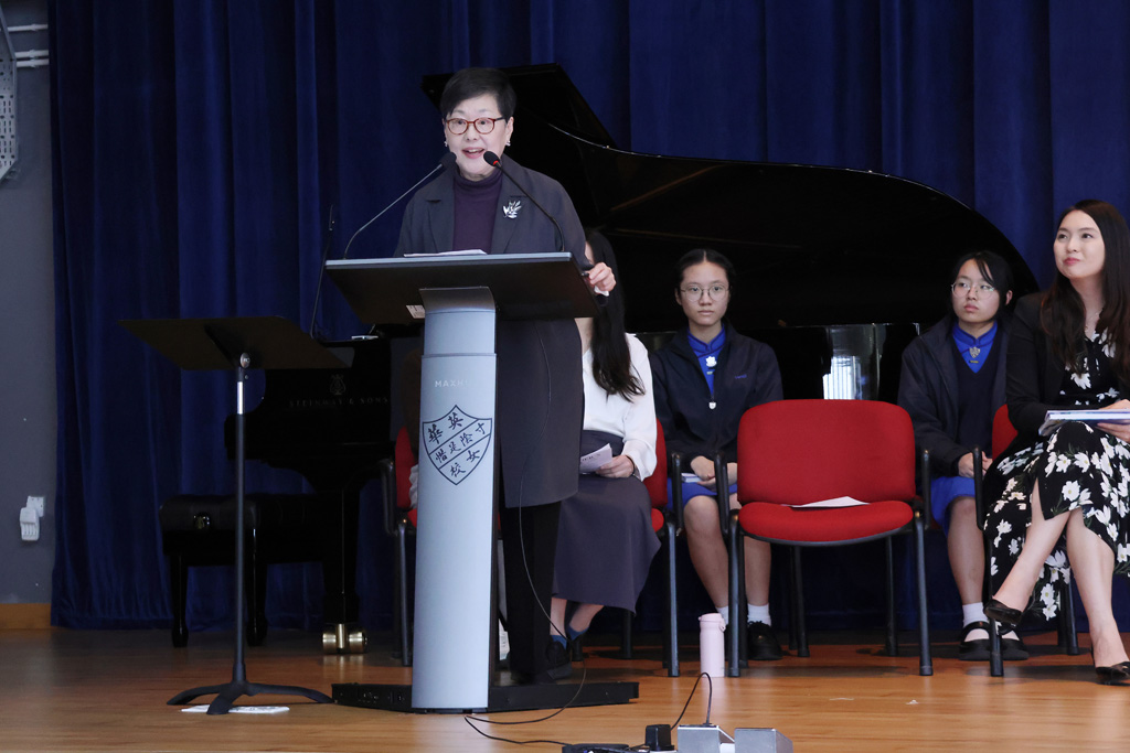 Our annual Founder’s Day Service was held on March 13, 2026.  We were honoured to welcome the Honorary Manager of the IMC (Incorporated Management Committee) and alumna Ms Enian Tsang (曾綺年女士), who shared on the theme “Build My School on Christ 建我學校在基督身.”  Ms Tsang recalled how, in the early 1970s, Ying Wa organised a Fun Fair and leadership training camps to broaden students’ horizons and encourage them to explore.  She also drew inspiration from two Bible verses:  Matthew 7:24, “Everyone then who hears these words of mine and does them will be like a wise man who built his house on the rock,” and Ephesians 4:15‑16, “Rather, speaking the truth in love, we are to grow up in every way into him … makes the body grow so that it builds itself up in love.”  Her message reminded us that always bearing God’s words in mind and living them out are the best ways for Ying Wa to continue shining as a 126‑year‑old school blessed by God.