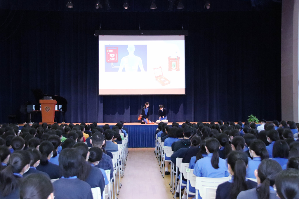 On May 17, members of Hong Kong Red Cross Youth Unit 11 organized an informative assembly on first aid and the use of automated external defibrillators (AED). Students incorporated presentation, drama, demonstrations, and a Q&A session to share knowledge and skills with their peers, making the assembly both educational and engaging. Overall, the assembly served as a good platform to raise students’ awareness of the importance of first aid and equip them with life-saving techniques.