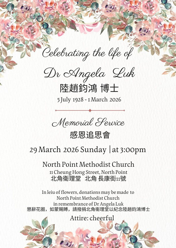 The family invites the Ying Wa community to join them in a Memorial Service to celebrate the extraordinary life of Dr Luk: