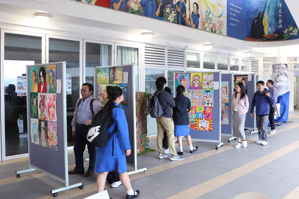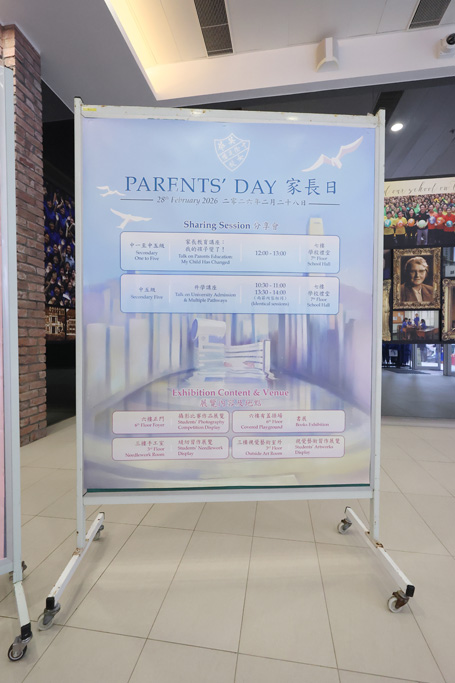 To enrich the occasion, a book exhibition was staged on the 6/F to reinforce our reading culture. Displays outside the Art Room and in the Needlework Room further illustrated students’ diverse talents and dedicated efforts. Parents were also invited to attend a talk entitled “My Child Has Changed”, and S5 parents joined a special briefing on university admissions and multiple pathways. This session offered practical guidance to support informed choices about future studies.