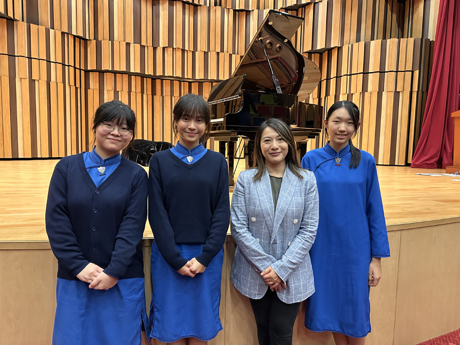 We are grateful to have invited our honorable guest pianist, Dr Cherry Tsang (曾捷麗博士), the faculty member of Hong Kong Baptist University and Hong Kong Academy for Performing Arts, to coach our talented pianists in our Piano Masterclass.   Our three pianists, Li Ham Nga (2E), Cheung Wing Kiu Hillary (3E), and Situ Yinglan (5C) performed to an enthusiastic audience renowned piano works from Prokofiev, Liszt and Szymanowski of contrasting styles.