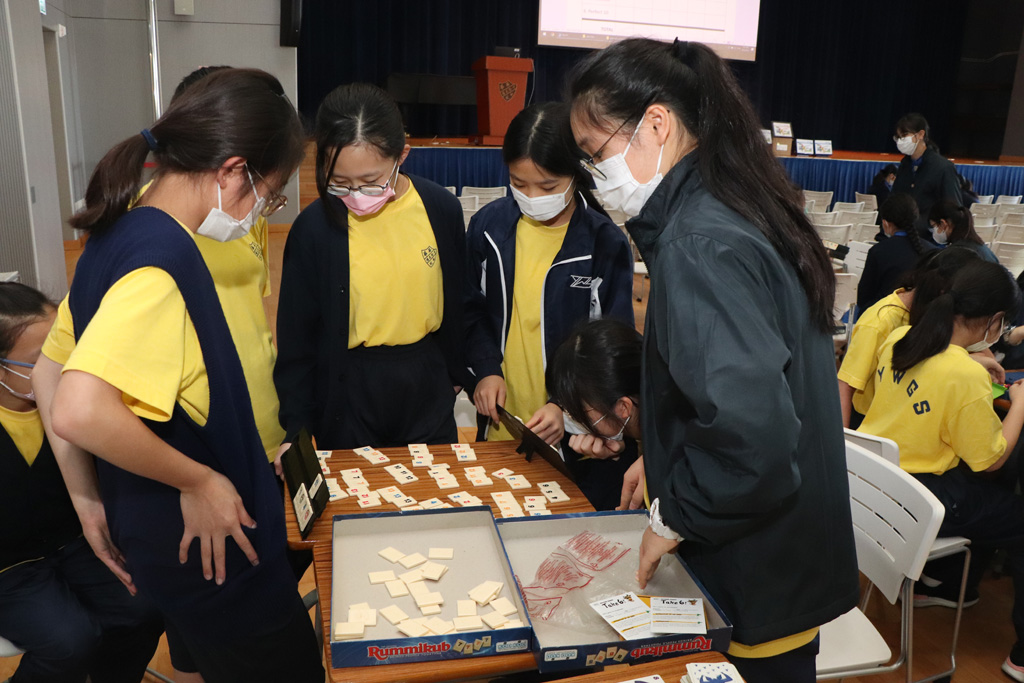 On December 8, 2021, the Mathematics Department organized a S1 Inter-class Mathematics Competition, promoting fun in learning through educational games. 50 assistants from S3 to S5 guided the S1 to play board games that cultivate strategic thinking. Not only was the competition filled with joy and laughter, but it also helped sustain students’ interest in mathematics.