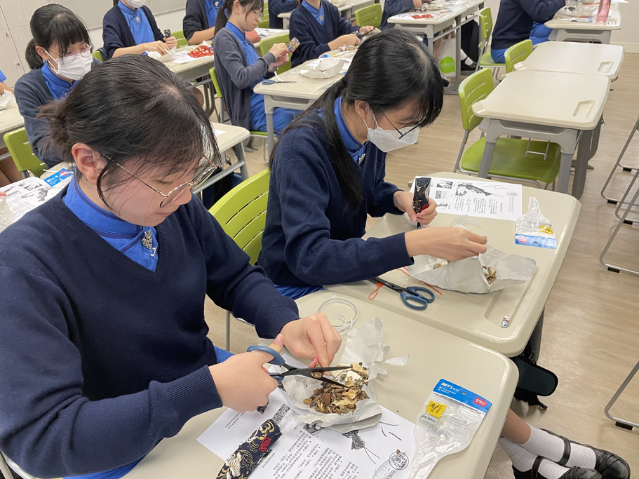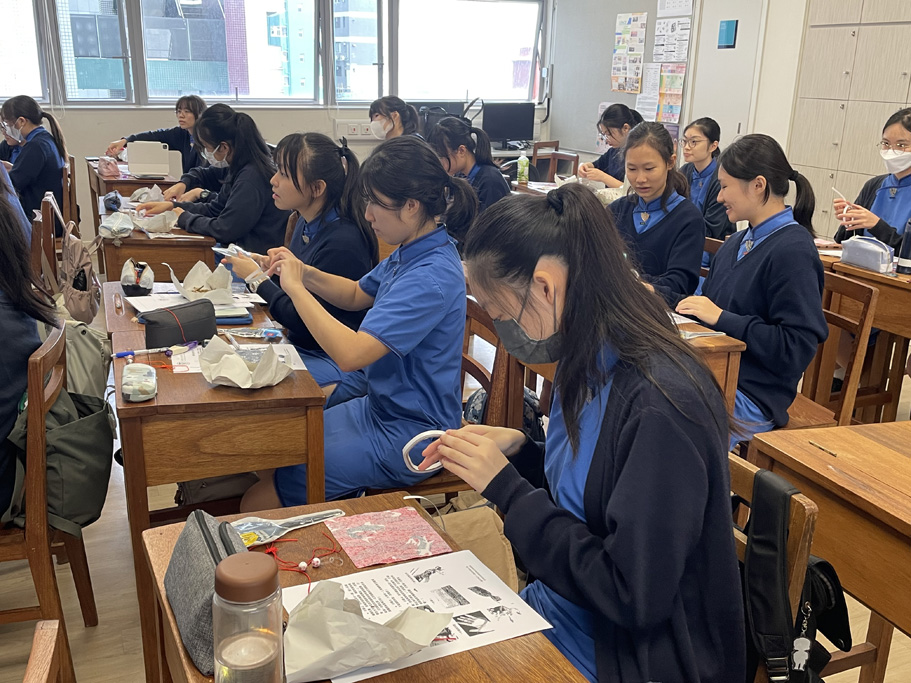In November 2024, we were delighted to welcome Hong Kong Jigucun Guocui Education Limited (校園集古村國粹教育有限公司) to share insights on skincare from the perspective of Chinese medicine. The session included a hands-on workshop where students learned to create their own anti-epidemic Chinese herbal sachets. During the presentation, students were enlightened on how acupuncture and traditional Chinese massage (推拿) contribute to effective skincare and overall health. Following the informative session, the instructor guided students through the process of making their own herbal sachets, specifically designed to bolster immunity against epidemics. This interactive experience not only allowed the entire class to engage actively but also sparked excitement as students had fun personalizing their sachets. It was truly impressive to see quite a number of students request additional materials to create extra sachets for their friends and family. Through this meaningful activity within the context of cultural security, we hope to instill the values of appreciation, aspiration, eagerness to try, national identity, and respect among all students.
