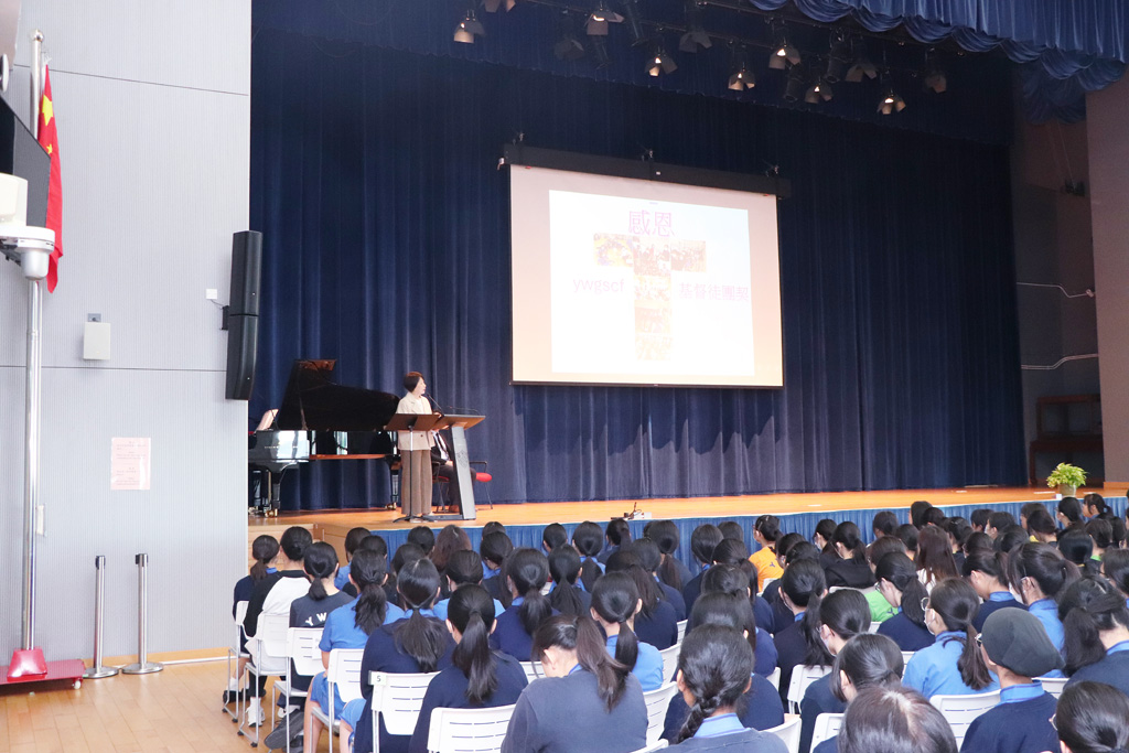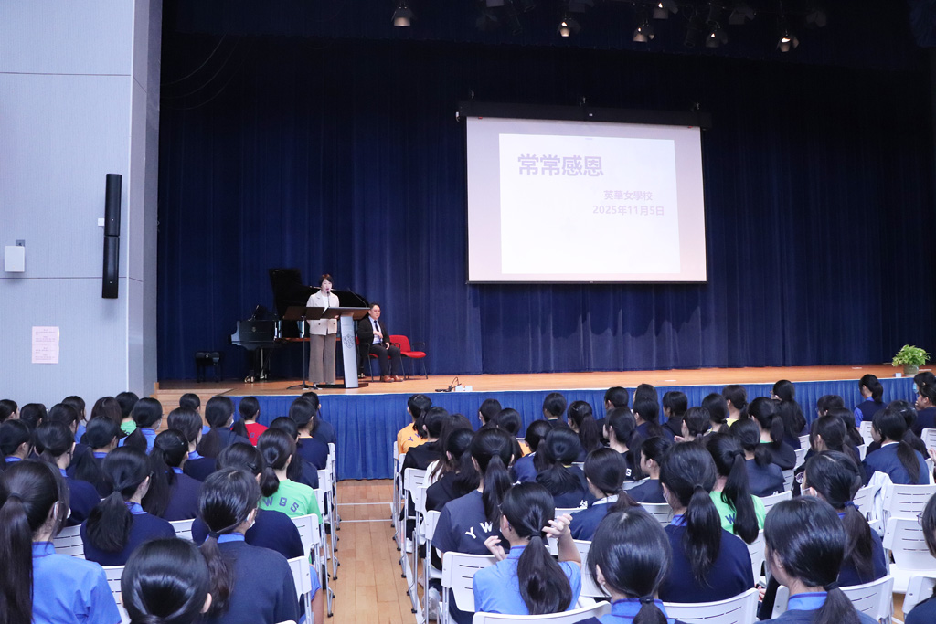 It was a wonderful surprise when our recently retired and respected teacher, Ms Tse Shuk Chun, returned to Ying Wa to share on the theme of gratitude on November 5, 2025. She began with a verse from Psalm 23 to inspire students to reflect. Ms Tse then recalled her many meaningful experiences at Ying Wa, for which she felt deeply thankful. These included her roles as class teacher, subject teacher, advisor of the Christian Fellowship, and advisor of the Interact Club. She encouraged us to live out the Ying Wa spirit of Yes We Go and Serve! To wrap up the assembly, Ms Tse encouraged everyone to put gratitude into practice by keeping a diary to jot down daily blessings, praying with thankfulness, and taking action to show appreciation. She reminded us to be grateful for everything we encounter and to carry that spirit of gratitude with us always.