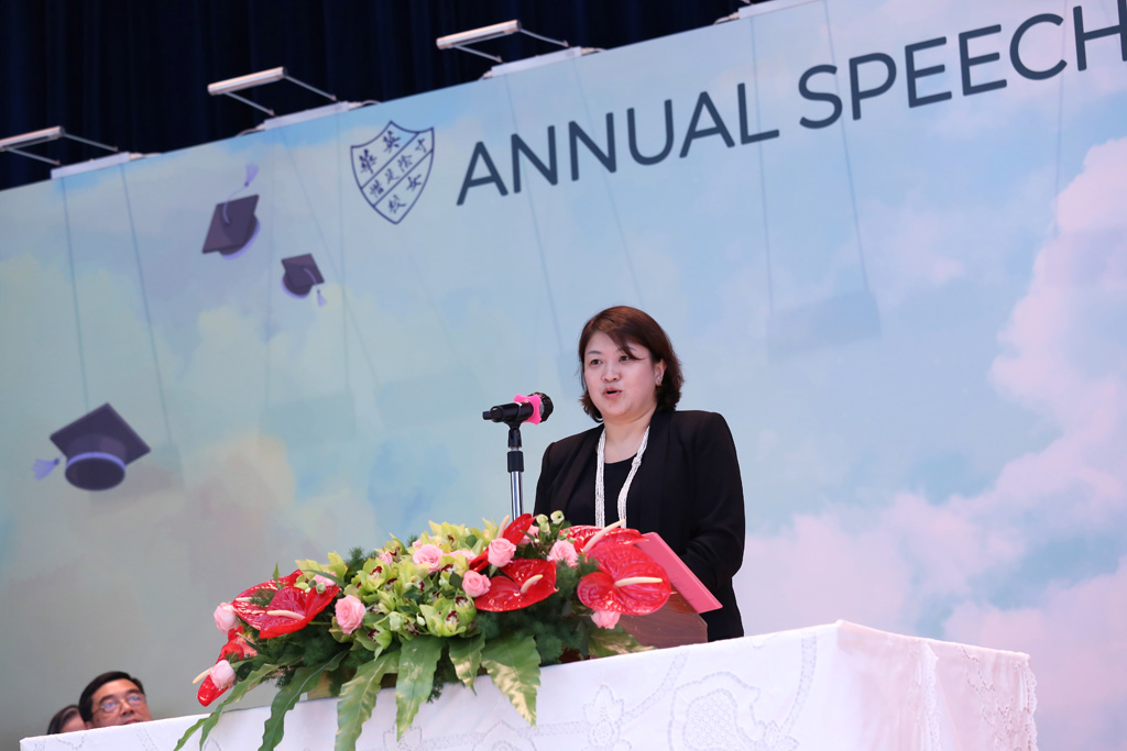 The annual Speech Day took place on July 9 at the Silcocks Hall. Mr Francis Kwan, our Principal, warmly welcomed parents and congratulated the graduates on their successful completion of secondary school. We were privileged to have Dr Libby Lee (李夏茵醫生), JP, an alumna and the Under Secretary for Health at the Health Bureau (醫務衞生局副局長) of the HKSAR, PRC, as one of our distinguished guests.