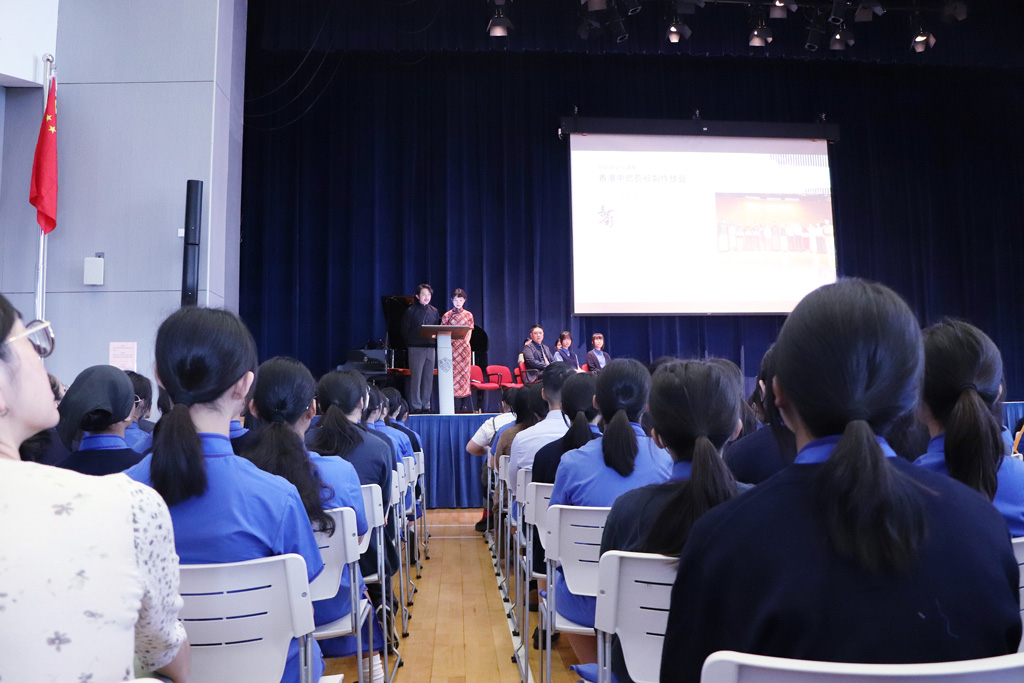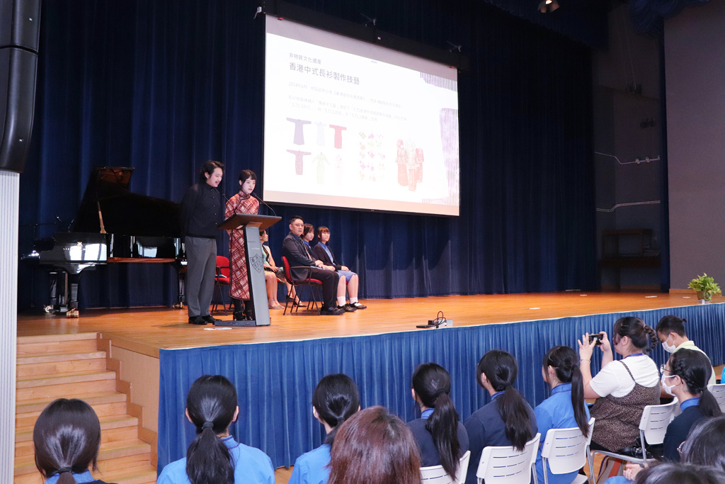 Miss Cheng Chau Hung Quinn (鄭秋紅) and Mr Lau Hiu Lok Andrew (劉曉樂) from the Hong Kong Cheongsam Association visited Ying Wa to educate us about the cheongsam's origins and evolution.  They began by emphasizing its significance as part of the intangible heritage list, and then went on to illustrate how Western influences and feminism have shaped its design over time.