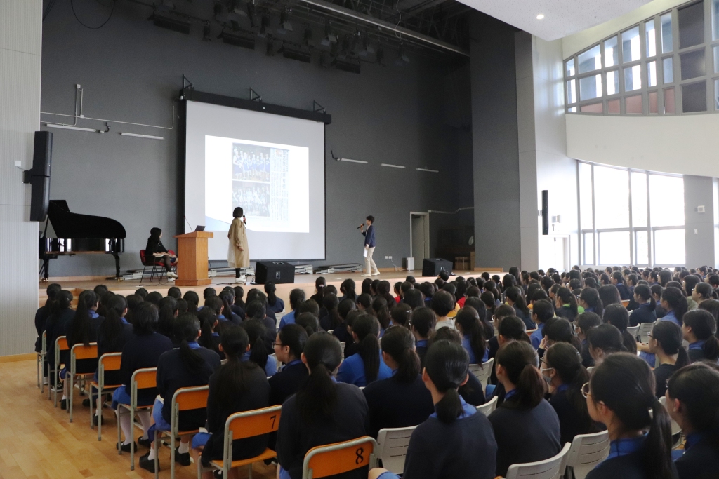 In the morning assembly of 3rd April, two alumnae, Ms Chan Yin-ling Elaine, Ms Leung Ching-man Jennie and our teacher Ms Wong Wai-fong were invited to share how participating in extra-curricular activities and leadership training programmes have positive impacts on ones’ career planning, resilience and personal development. Currently, Elaine is a Police Clinical Psychologist while Jennie is working as a Senior Immigration Officer at the Immigration Department. Back in the old days, not only were they core members of the Basketball Team, but they also served as student leaders in the Student Association and the Inter-house Committee. In their sharing, they emphasised the need of striking a balance among studies, activities and rest. The importance of leadership skills in shaping ones’ personal and career growth was further highlighted. They ended the assembly by encouraging students to allocate their time wisely while upholding the school motto, “Time is precious, treasure every minute”.