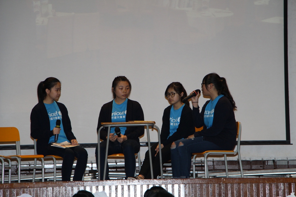 With the support of UNICEF Hong Kong and the joint efforts of the Civic Education Committee and the Interact Club, a school-based UNICEF Club was established in the beginning of this school year (2015-16). Club members were encouraged and empowered, under the guidance of UNICEF Hong Kong, to organize different programmes promoting global citizenship and the rights of children. Also, it was hoped that student leaders could develop their potential through learning and cooperating with each other.