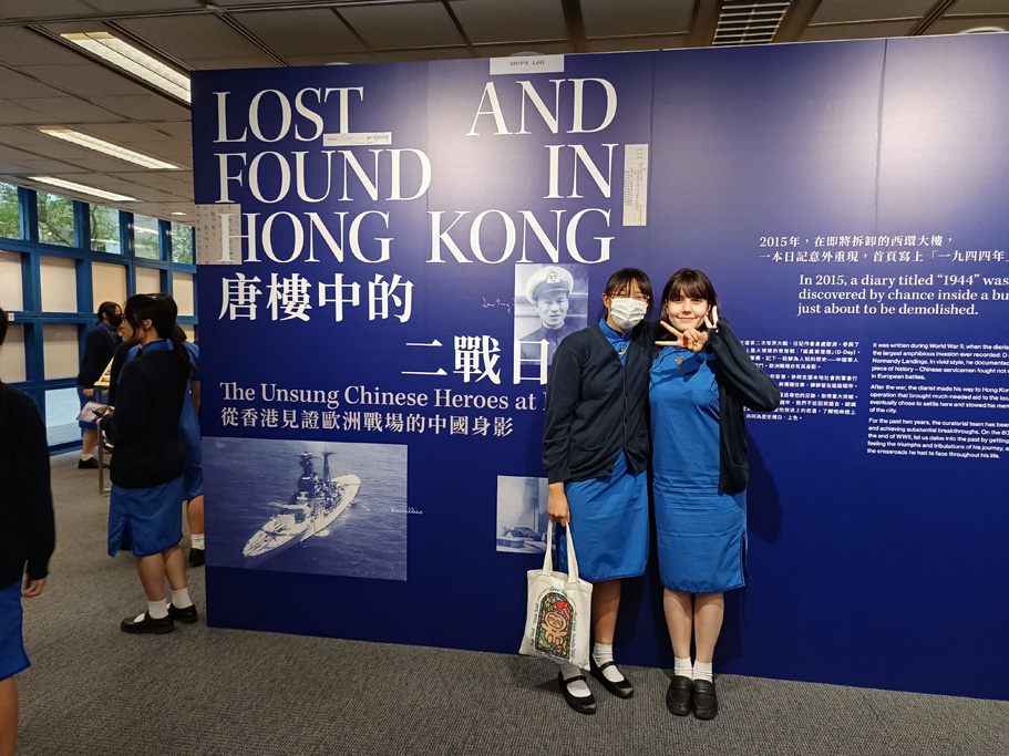 On October 23, a group of 28 S4 History students, organized by the History Department, visited the "Lost and Found in Hong Kong (唐樓中的二戰日記)" exhibition at HKUST, hosted by the Asia Society Hong Kong Centre. The exhibition commemorates the 80th Anniversary of the end of World War II in Europe, focusing on the unsung Chinese heroes of the Normandy landings. Students engaged with the docent, Ms Teresa Mak, learning about the contributions of Chinese naval officials during the Normandy landings and how they were trained alongside the Allied Powers during WWII. This experience deepened students' understanding of history and encouraged critical thinking about diverse perspectives in historical narratives.